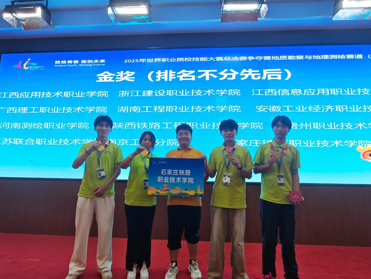 2025年8月25日至30日,世界職業(yè)院校技能大賽總決賽地質(zhì)勘察與地理測(cè)繪賽道(高職組)爭(zhēng)奪賽在江西應(yīng)用技術(shù)職業(yè)學(xué)院成功舉行。經(jīng)過激烈角逐,石鐵院測(cè)繪工程系王政、信蘇哲、竇甜甜、張旭闊四位同學(xué)組成的參